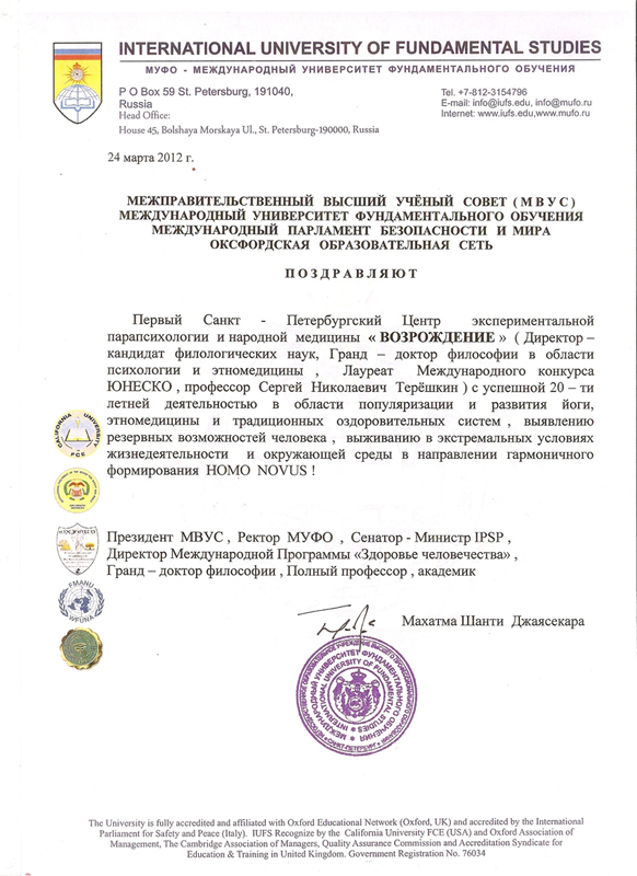 Основатель первого в Санкт-Петербурге Центра экспериментальной парапсихологии и народной медицины "Возрождение". Основан в 1991 г.