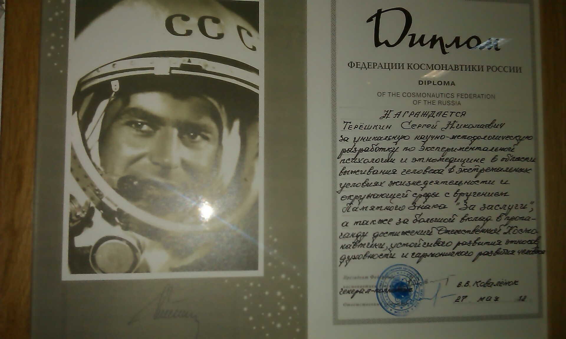 Награждение медалью Ю. Гагарина