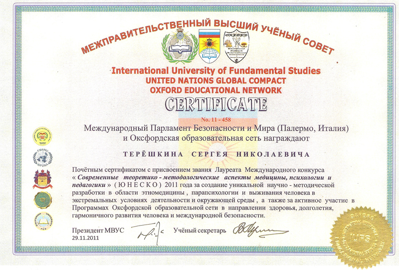 Лучший учёный Мира по Оксфордской номинации за синтез методик